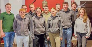 Das Foto zeigt von Links: Sebastian Himler (Kassierer), Ole Drees, Tobias Schürmann, Mika Mentrup, Ida Freye, Timo Zywietz, Fee Leuer, Tim Laukötter (1. Vorsitzender), Henry Damhuis, Raphael Schürmann und Lotte Confer.